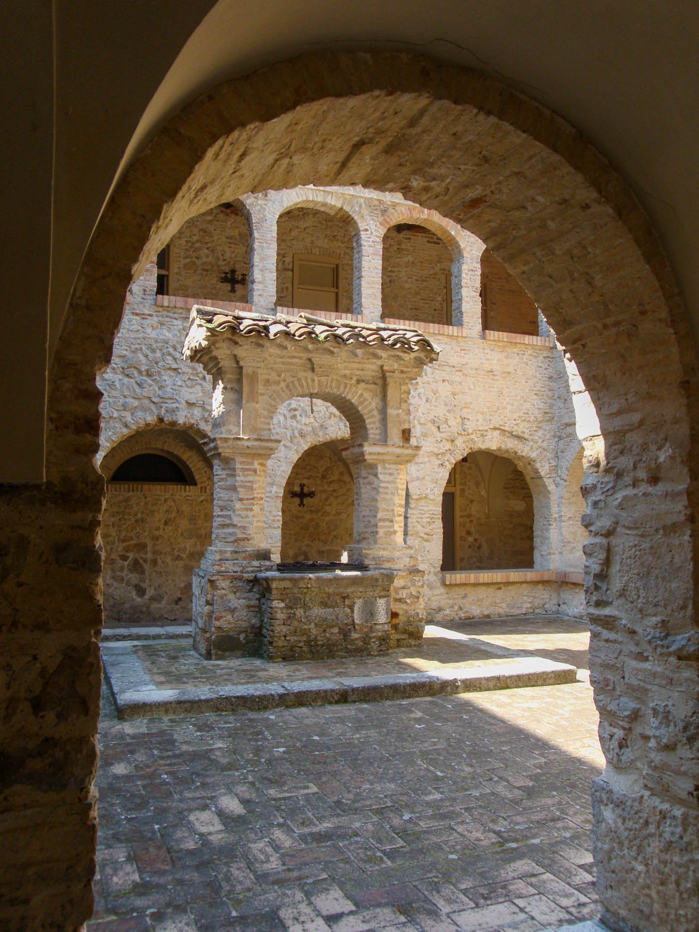 Un riposante portico affianca la chiesa ed un piccolo chiostro a due ordini, con al centro il pozzo del miracolo, conferisce un’atmosfera di raccoglimento, misticismo e spritualità a tutto il convento. La struttura odierna, finalizzata all’accoglienza di gruppi, laici e religiosi, conserva beni ed arredi, come una statua di San Francesco in terracotta del 1500 ed una tavola rappresentante la Madonna con il Bambino, che faceva parte di una tavola più grande commissionata dai frati nel 1541 ad artisti veneziani , durante le fiere di Lanciano, di cui esiste ancora il contratto negli archivi notarili di Lanciano.