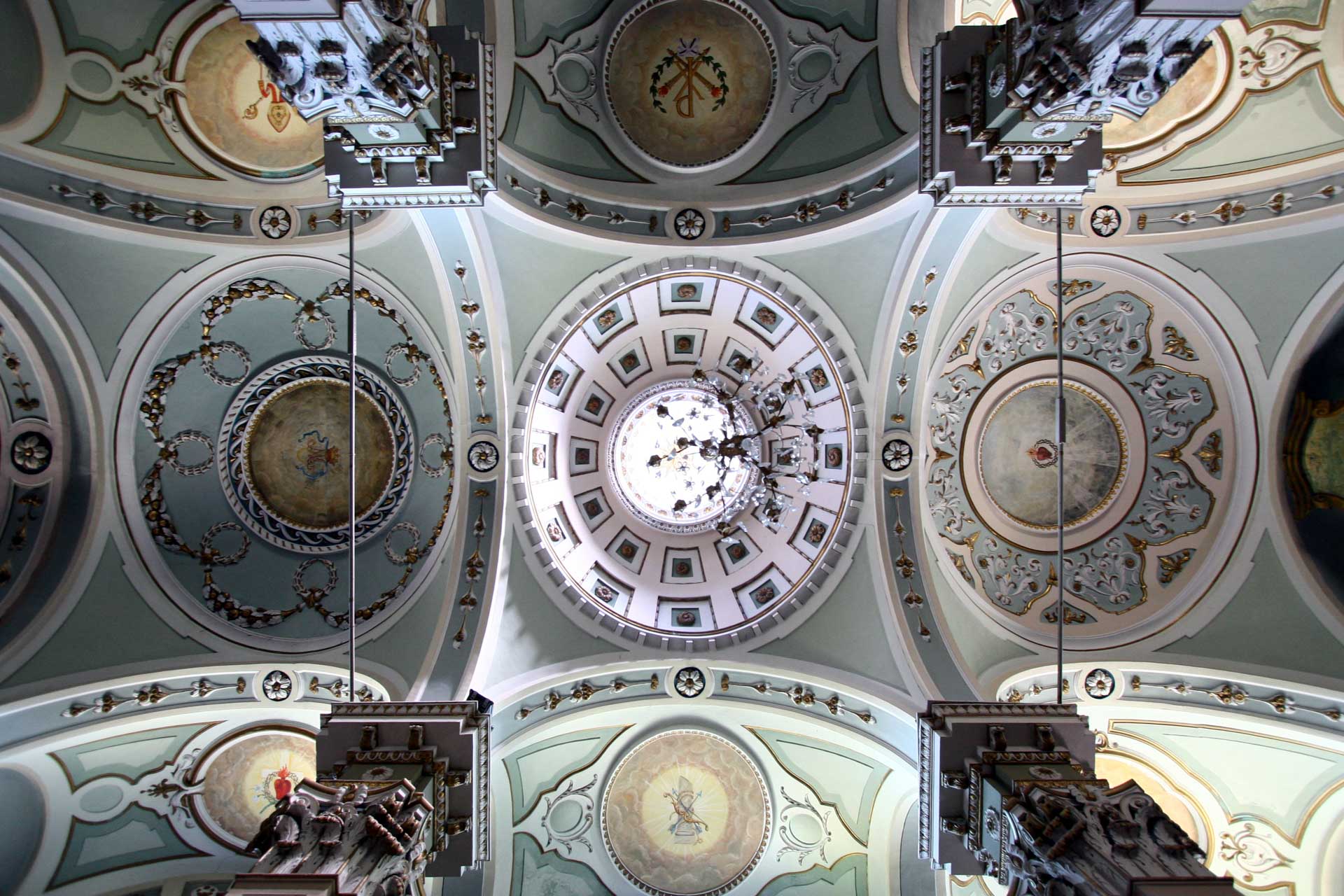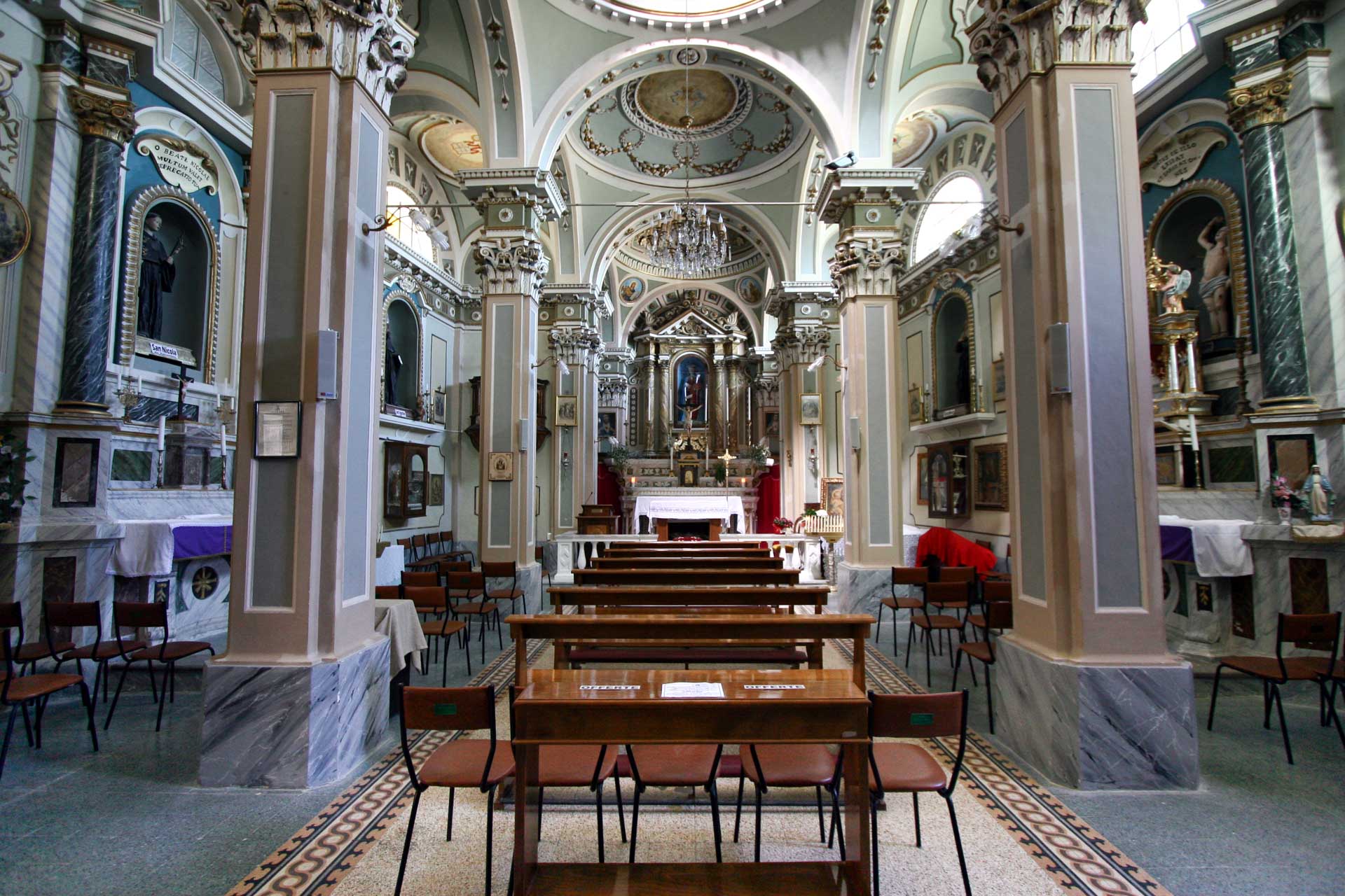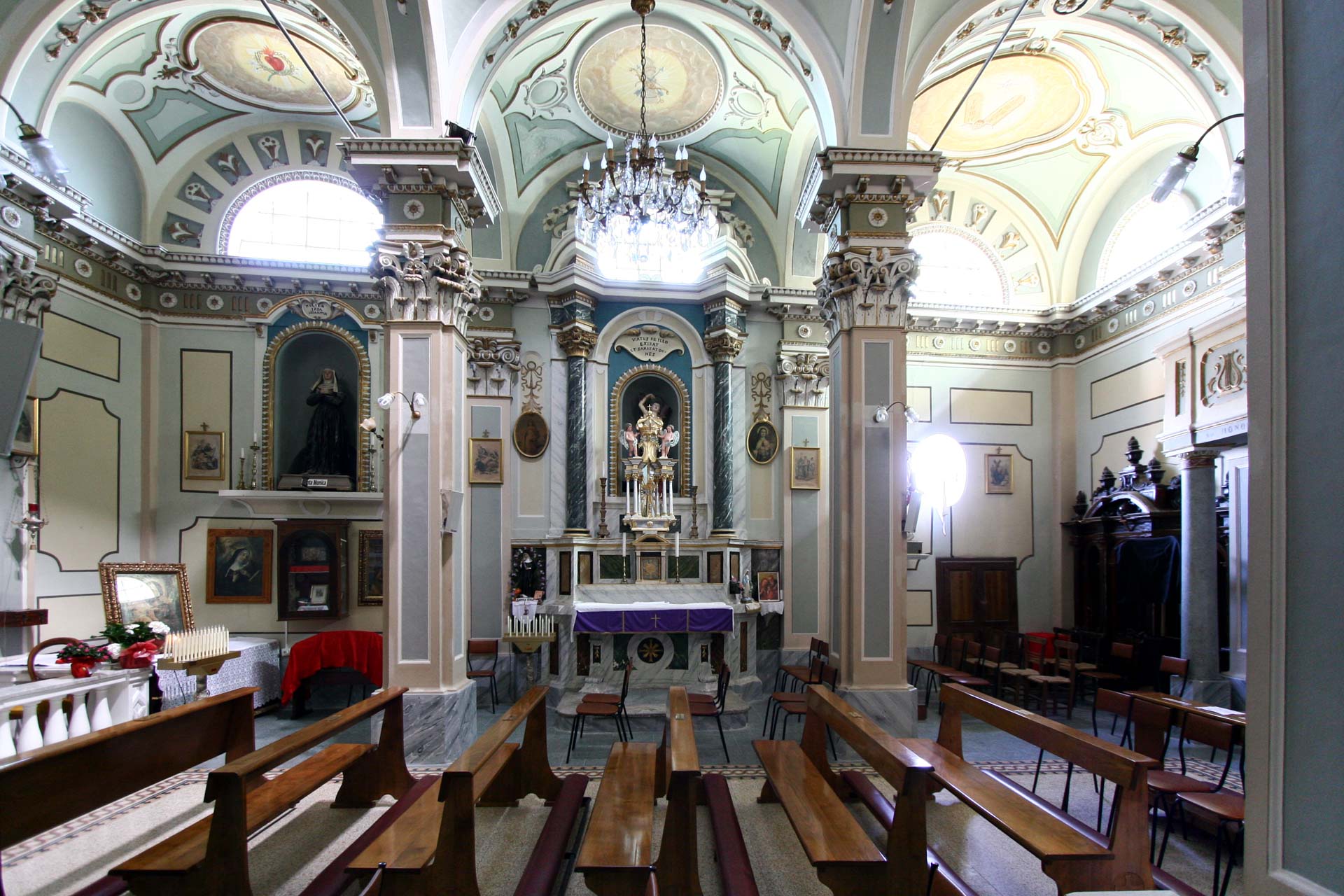 La ricchezza cromatica interna, sostanzialmente ben conservata, è stata in gran parte cancellata dai restauri del 1980.