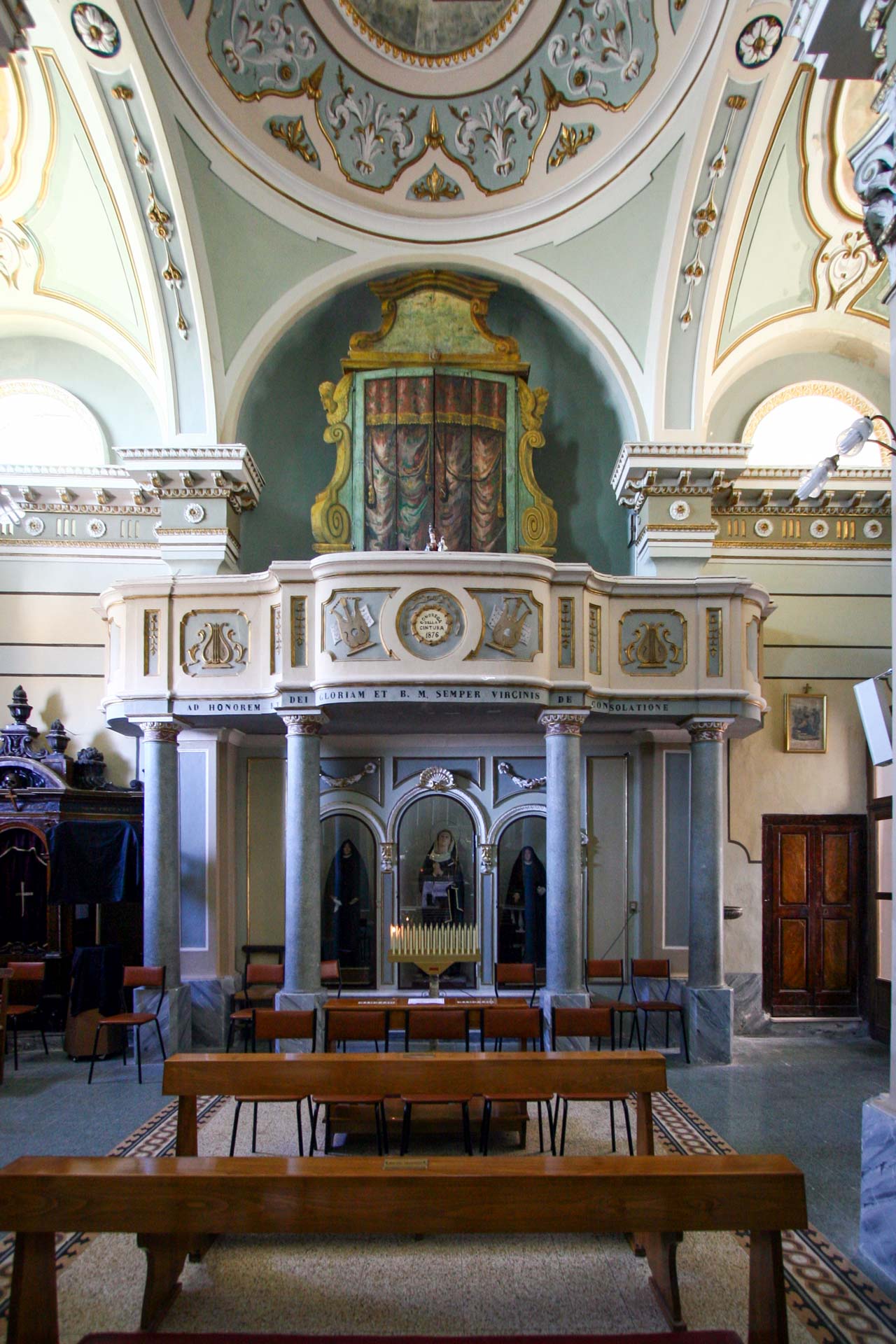 L’organo è opera di Francesco D’Onofrio di Caccavone ( prov. di Isernia), della prima metà del 1700 con scritta in latino “ad onore e gloria di Dio e di Maria sempre Vergine della Consolazione”, restaurato dalla Congrega della Cintura.